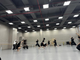 2022 级、2023级在实践周复排舞蹈剧场《MIAO》,新增“后人类·民族志”单元,以“苗族古歌”为叙事基底,通过“混沌—种子—鸟—水—鼓—路”六大篇章,把枫树、吉宇鸟、大洪水、迁徙之路等神话母题转译为现场舞蹈。